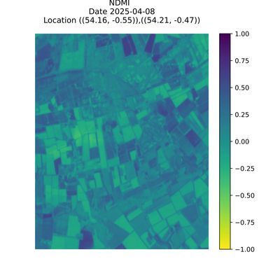 The Normalized Difference Moisture Index (NDMI) detects moisture levels in vegetation using a combination of near-infrared (NIR) and short-wave infrared (SWIR) spectral bands. SWIR band reflects changes in both the vegetation water content and the spongy mesophyll structure in vegetation canopies, while the NIR reflectance is affected by leaf internal structure and leaf dry matter content but not by water content. The combination of the NIR with the SWIR removes variations induced by leaf internal structure and leaf dry matter content, improving the accuracy in retrieving the vegetation water content. The amount of water available in the internal leaf structure largely controls the spectral reflectance in the SWIR interval of the electromagnetic spectrum. SWIR reflectance is therefore negatively related to leaf water content.